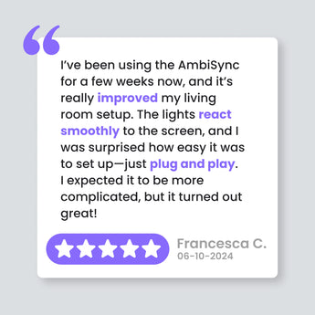 Schalt deinen Fernseher ein und lass dich begeistern! Die AmbiSync 2 synchronisiert sich direkt mit deinem Gerät und liefert beeindruckende Lichteffekte – ganz ohne lästige Einstellungen oder Apps.
