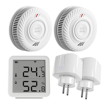 Inside the bundle, you get 2 Smart Smoke Alarms, 2 Smart Plugs and 1 Smart Hygrometer. Together, they deliver real-time insights, instant alerts and seamless home automation that genuinely improves daily living.